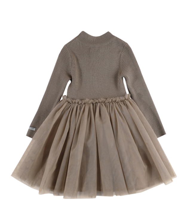 Abito Bambina Maglia e Tulle-Taupe