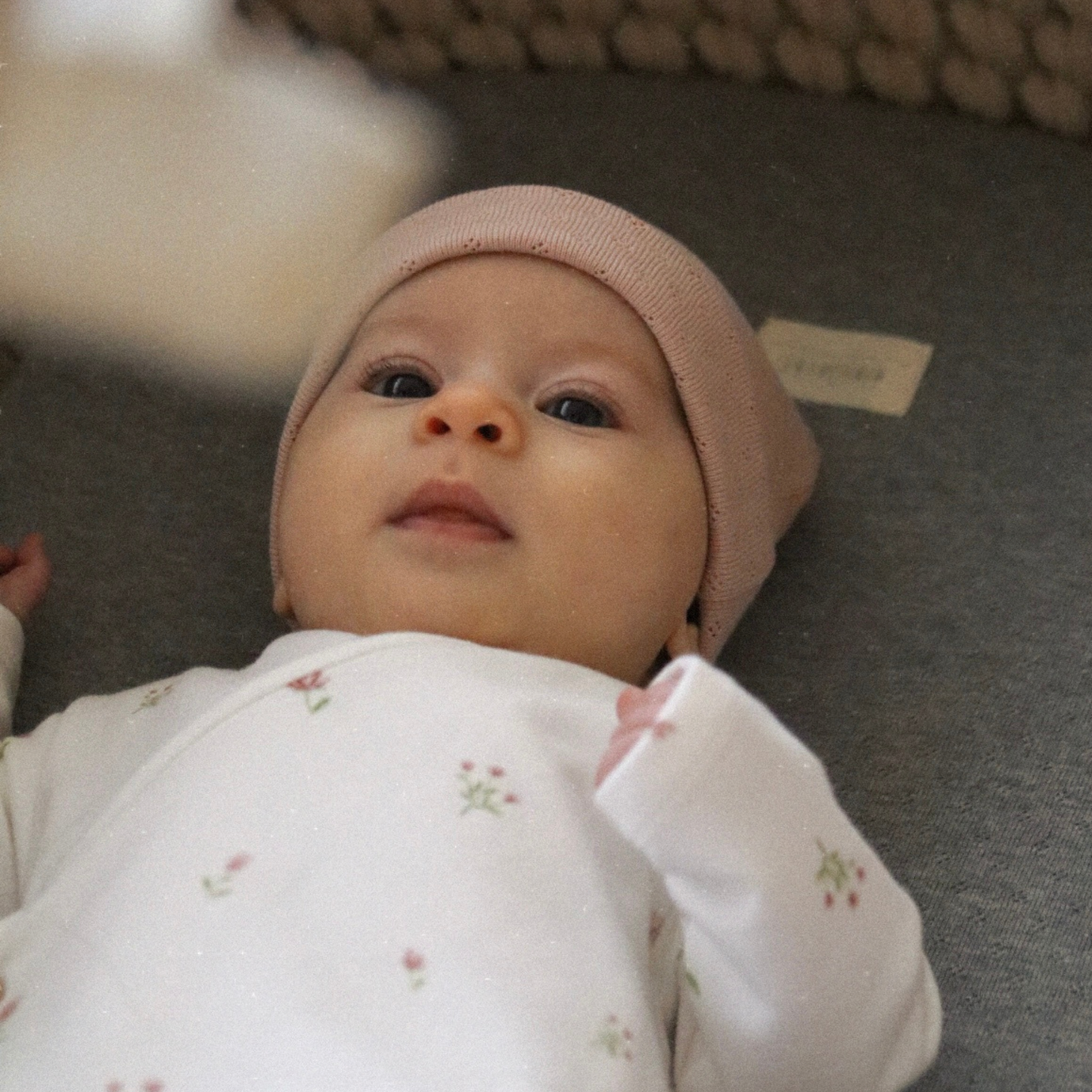 Cappellino neonato con nodo-Pointelle rose MINIBEBÈ