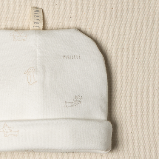 Nato dalla volontà di unire estetica, funzionalità e rispetto per la pelle delicata del neonato, questo completino è realizzato con filati naturali accuratamente selezionati. La linea Puppy nasce dall’amore per i dettagli e dalla cura sartoriale tipica della tradizione italiana: ogni cucitura è pensata per accompagnare con dolcezza i movimenti del bambino, mentre il caldo cotone organico assicura una sensazione di calore equilibrato senza mai surriscaldare. La fantasia con i piccoli bassotti aggiunge un tocco giocoso e tenero, mantenendo uno stile elegante e senza tempo.