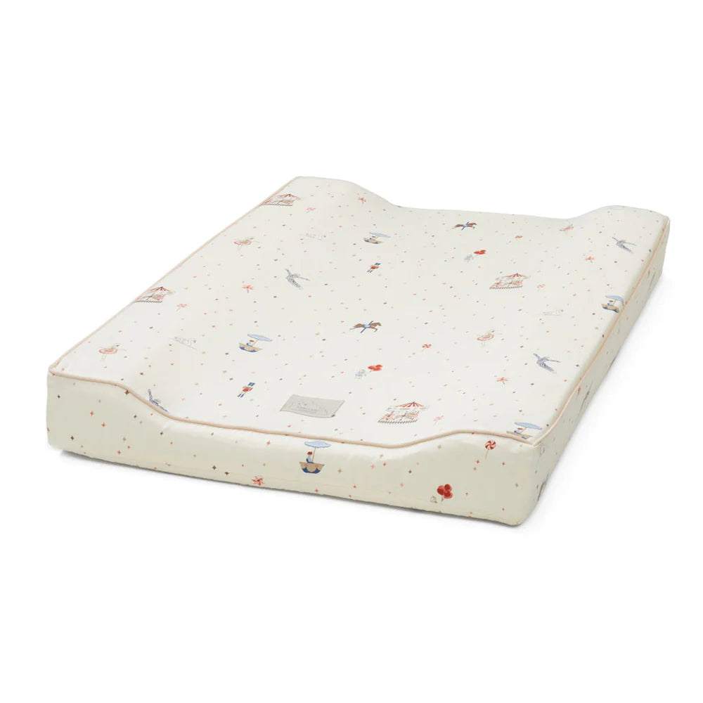 Il nostro materasso fasciatoio nella romantica fantasia Caroisel è l’accessorio perfetto per garantire comfort e sicurezza al tuo bambino durante i momenti del cambio. Realizzato in cotone biologico certificato OCS, è pensato per offrire una superficie morbida, accogliente e delicata sulla pelle sensibile del neonato.
