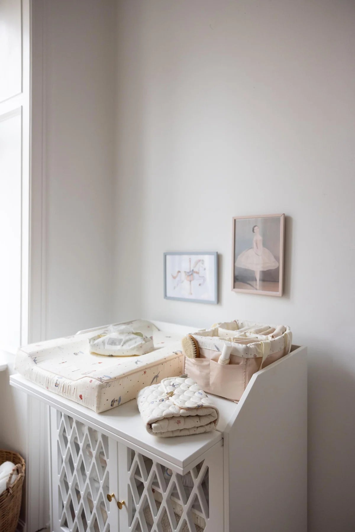 La fantasia Caroisel dona un tocco sognante e poetico alla zona cambio, rendendola elegante e raffinata. Ideale dalla nascita, è un elemento indispensabile nel corredino neonato, perfetto anche come idea regalo per baby shower.