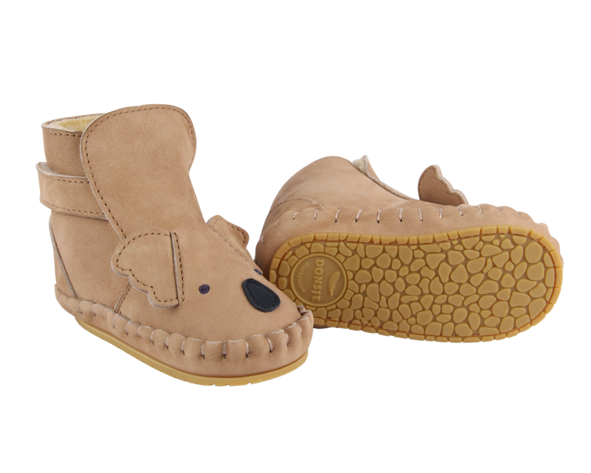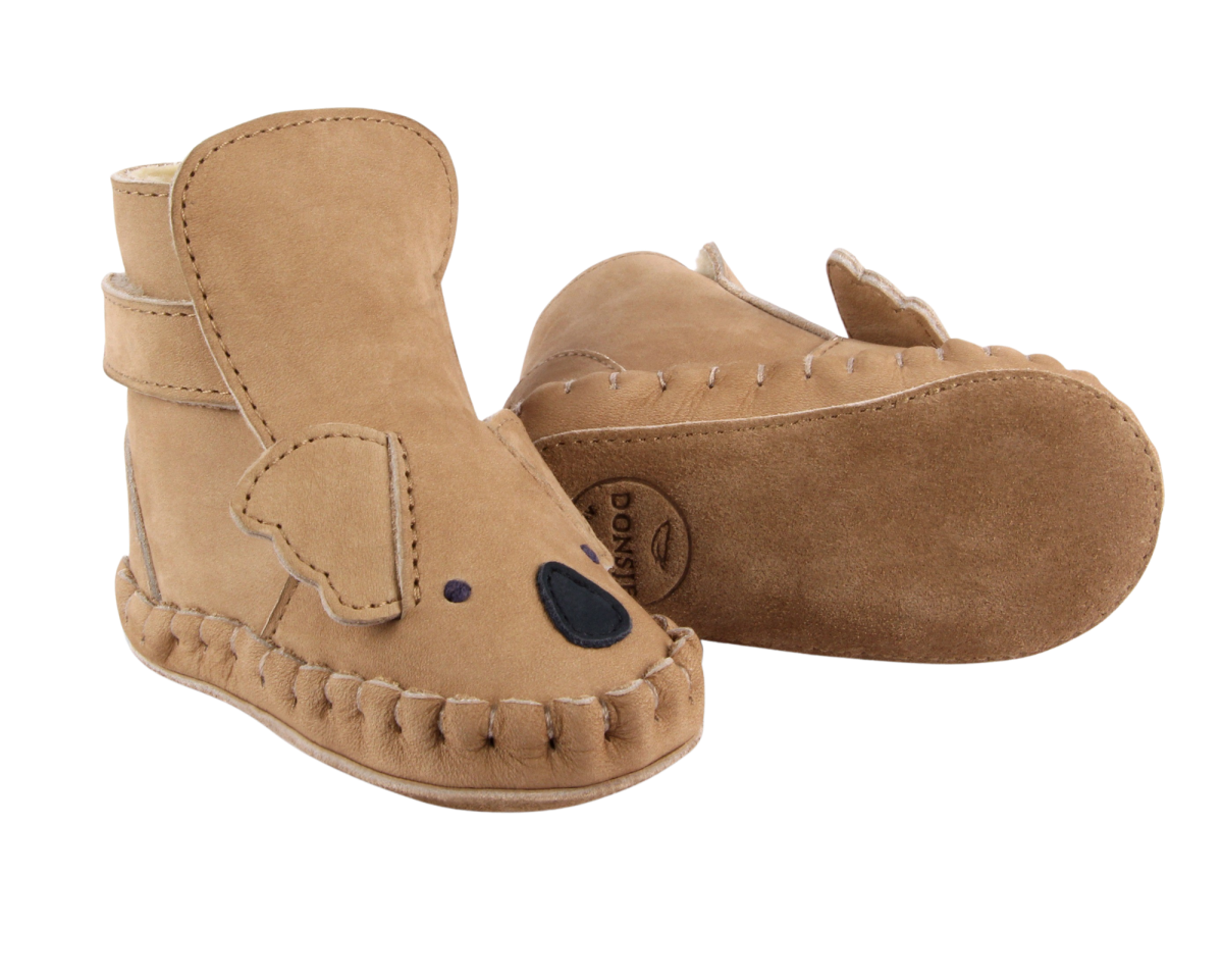 I Classic Booties Koala Truffle Nubuck sono progettati per accompagnare il bambino nei suoi primissimi passi, con materiali di alta qualità e dettagli che fanno la differenza: