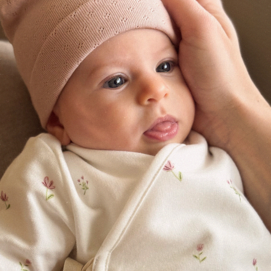 Cappellino neonato con nodo-Pointelle rose MINIBEBÈ